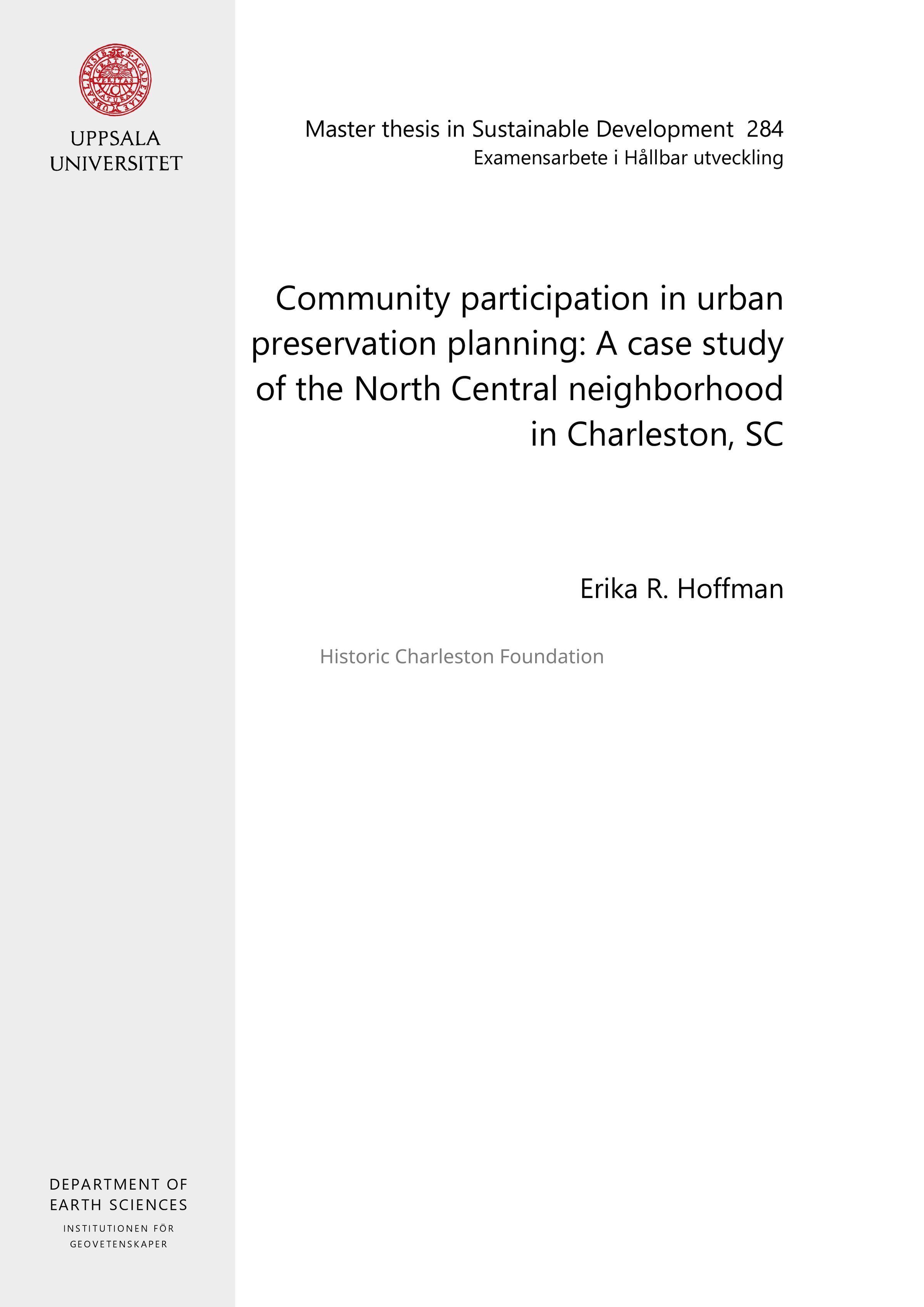 Community Participation in Urban Preservation Planning: A Case Study of the North Central Neighborhood in Charleston, SCEntry/Object ID