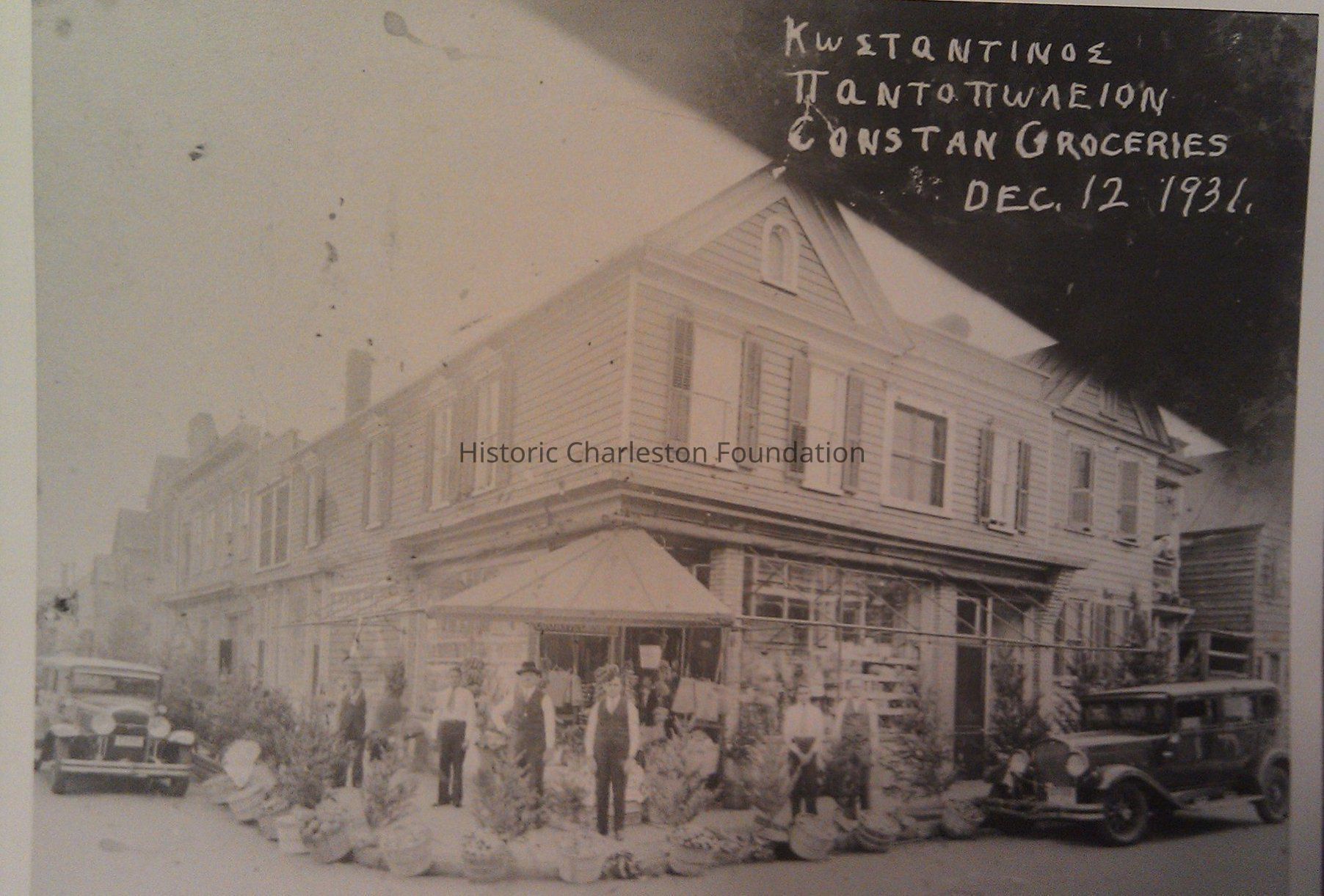 Per Old Codgers Charleston Address Book, appears to have had a history of being a corner grocery in the 20th century: 1901-1910 J. Henry Dreyer, grocer; 1920 K. F. Karast, business; 1930 Aotonio Contontino [sic], ftuits; 1940-1960 Demetre Grocery Store / Peter Demetre; 1960 Cannon Electronics; 1970s Demetre's Grocery; 1980 Murry & Middleton Meats; 1990 Vacant.Collection