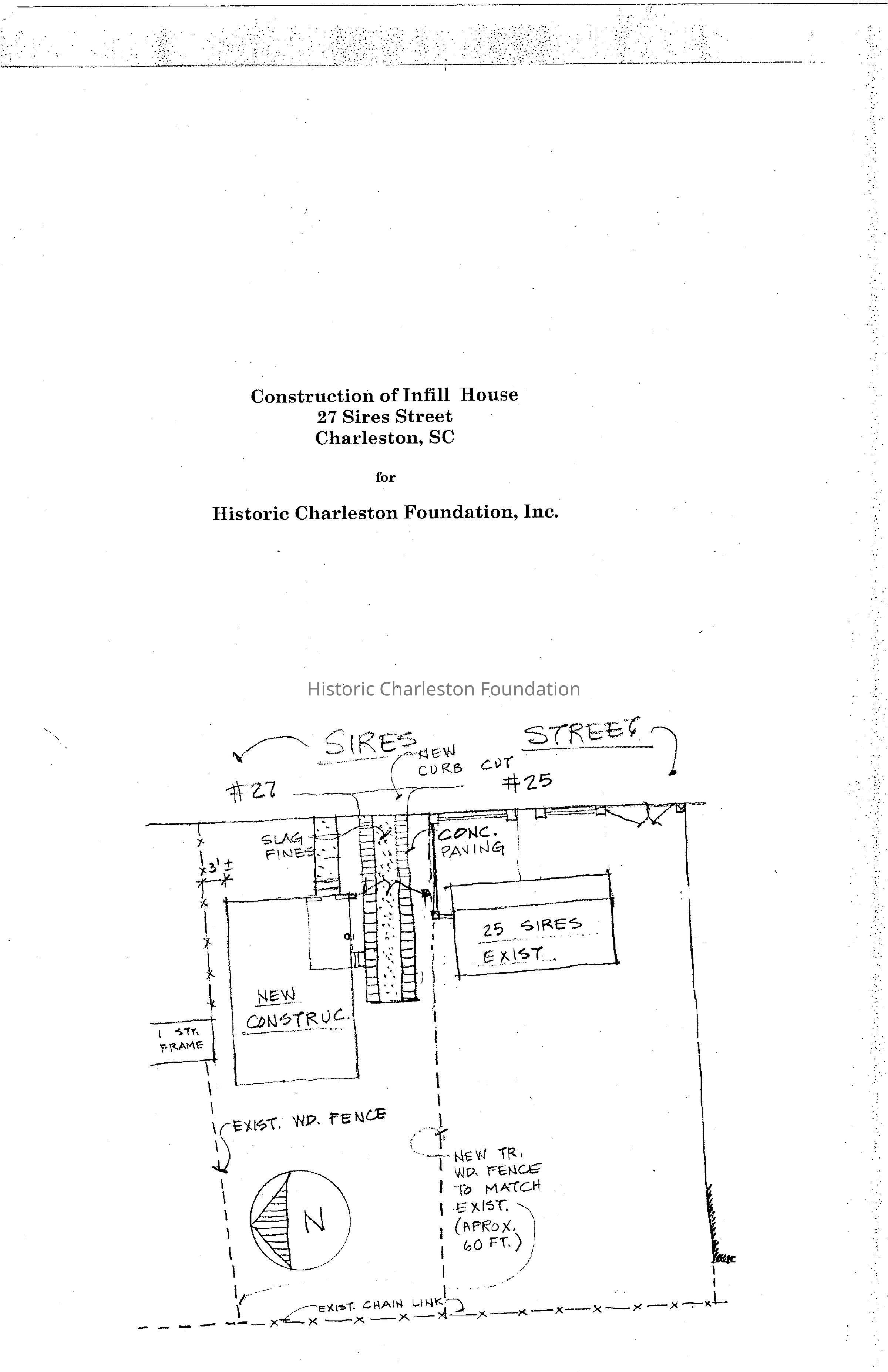 Construction Infill House, 27 Sires Street, for Historic Charleston Foundation, Inc.Entry/Object ID