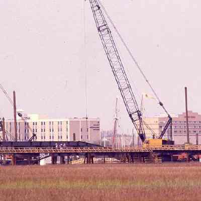 Forty-three color slides documenting the construction of the James Island Connector. Also includes marsh and waterfront views that show context.