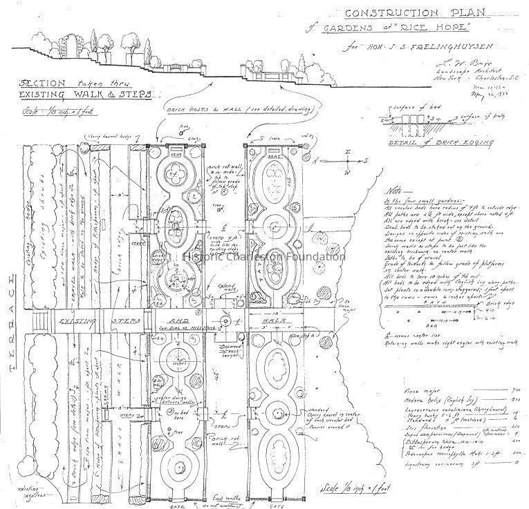 Construction Plan of Gardens at Rice Hope Plantation (original drawing)