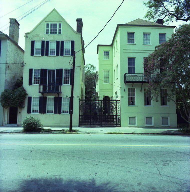 4) 25 Meeting Street and 27 Meeting Street, with ornate iron gate in between them (need to identify)