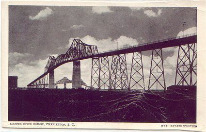 B&W photographic postcard of the Cooper River Bridge (Grace Memorial Bridge).