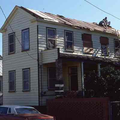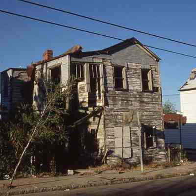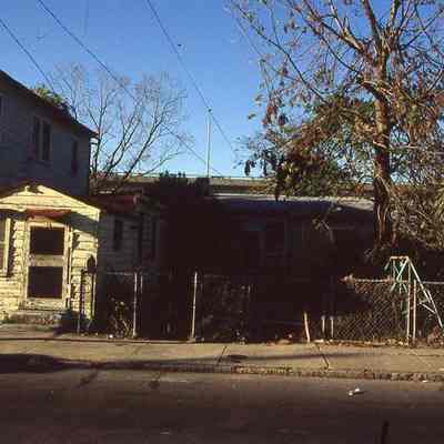 Twenty-four (24) color slides of Cooper Street dwellings, including Freedman's Cottages, and a church, spanning 37-113 Cooper Street. Some structures have been demolished.