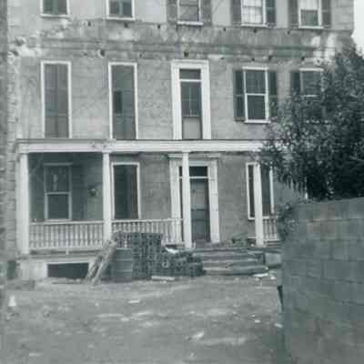 b-c: View of the Meyer Peace House in its original location,* showing a small two-story structure to its left, likely what was known as 6B Courthouse Square Square which was demolished in the 1960s. Also shows the front of the Blake Tenements (at right of photo).