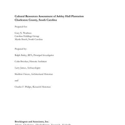 Cultural Resources Assessment of Ashley Hall Plantation, Charleston County, South CarolinaEntry/Object ID
