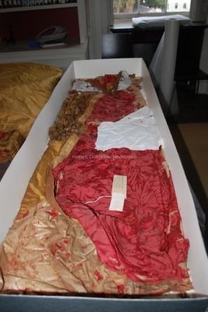 Red silk fabric with glazed cotton batting, silk collar wadding, no interliningCollection
