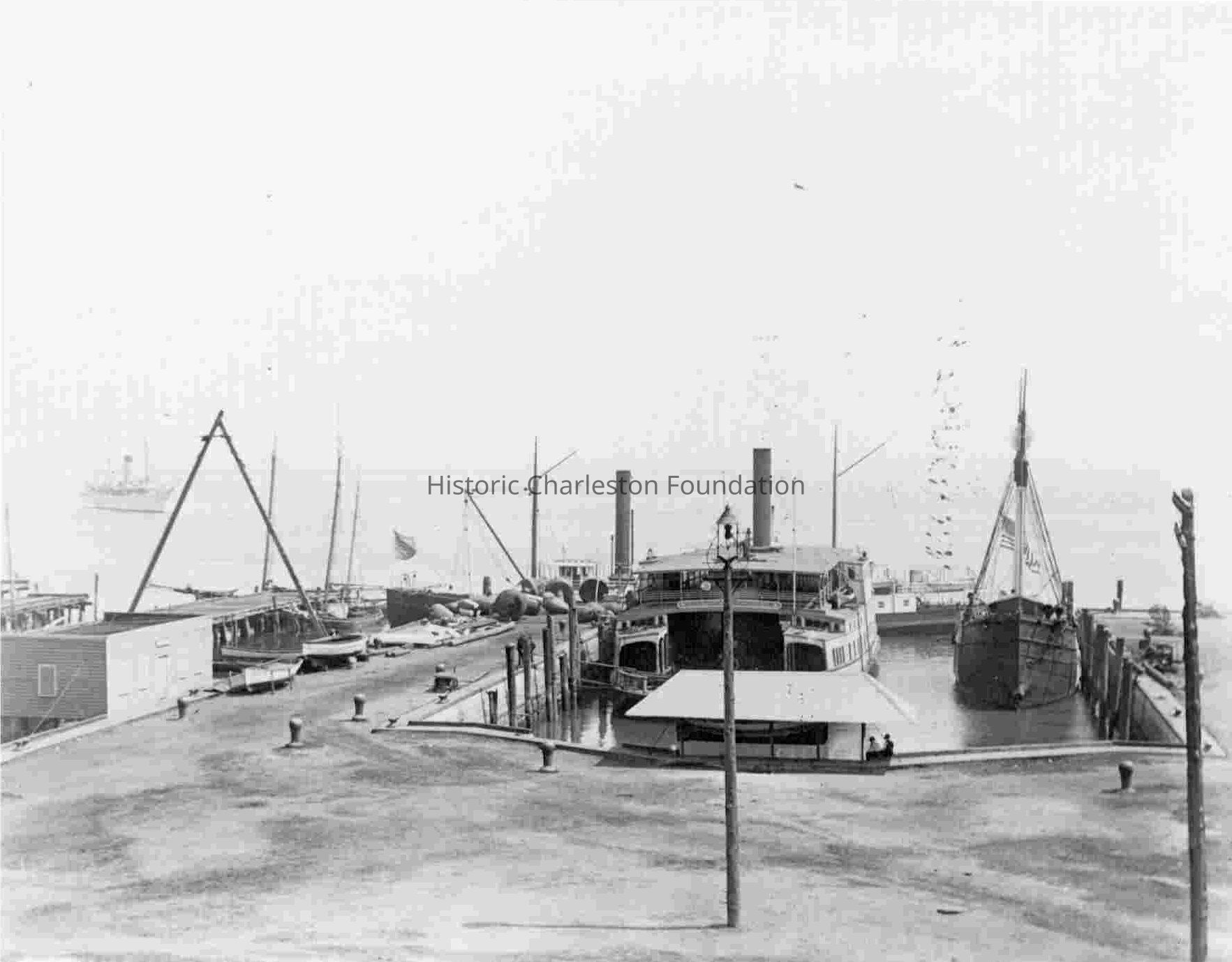 Docks at the Custom House. Original identification indicates that this photo was taken circa 1907.