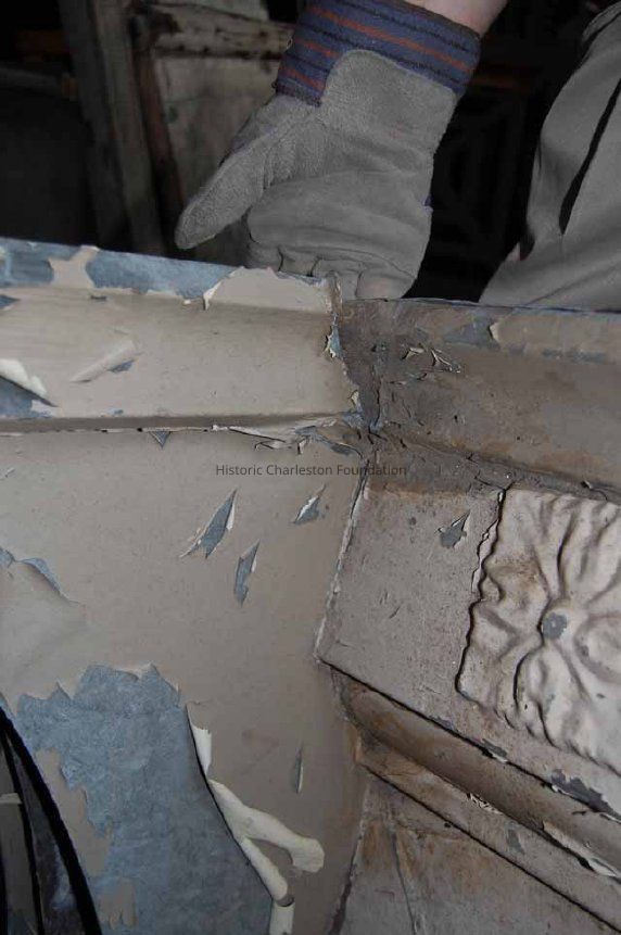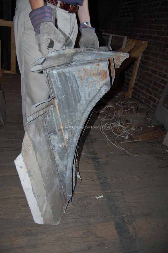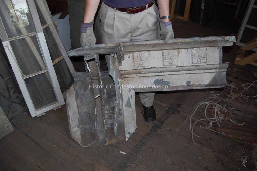 Presumably from 359 King Street, post Hurricane Hugo. Damage assessment survey indicates that 100% of the cornice was lost.Created By
