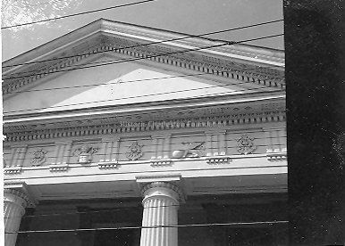 b: Detail of pediment, entablature, frieze, and column. Dated August 19, 1957.