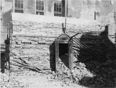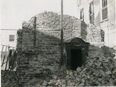 c: Demolition debris featuring a remnant of wall with bank vault. Dated December 1957.