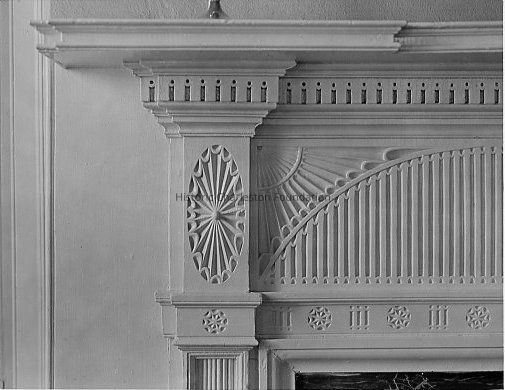 B&W photograph featuring the mantel detail, second floor drawing room of the Brewton-Sawter House [77 Church Street].Photograph Details