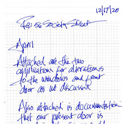 Provided by homeowner, Frank McCann, to April Wood (HCF) "for HCF's file" in December 2020. (See Media tab for accompanying note.)Copyright