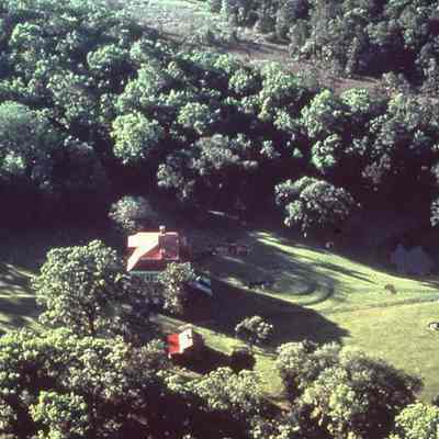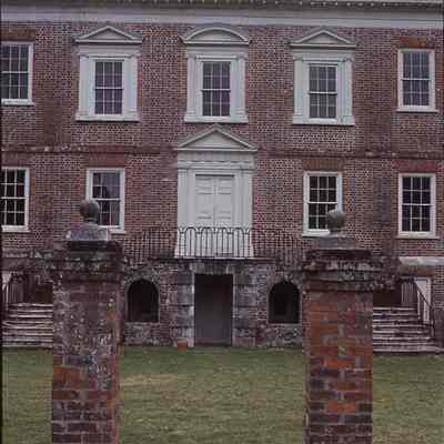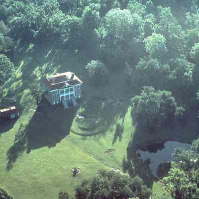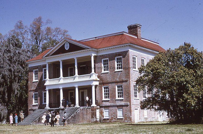 120 color slides of Drayton Hall: aerial views (4), exterior (45), exterior details (15), interior details (21), outbuildings (7), and grounds (28). Some slides are dated (1970s and 1980s); majority are not dated.