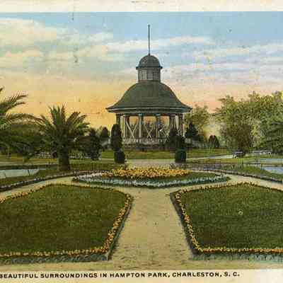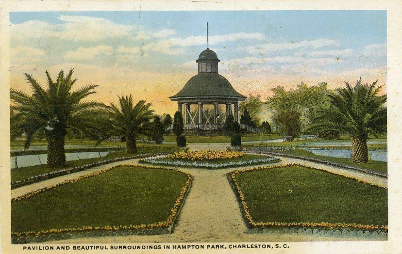 d: Titled "Pavilion and Beautiful Surroundings in Hampton Park." Postmarked 1913.