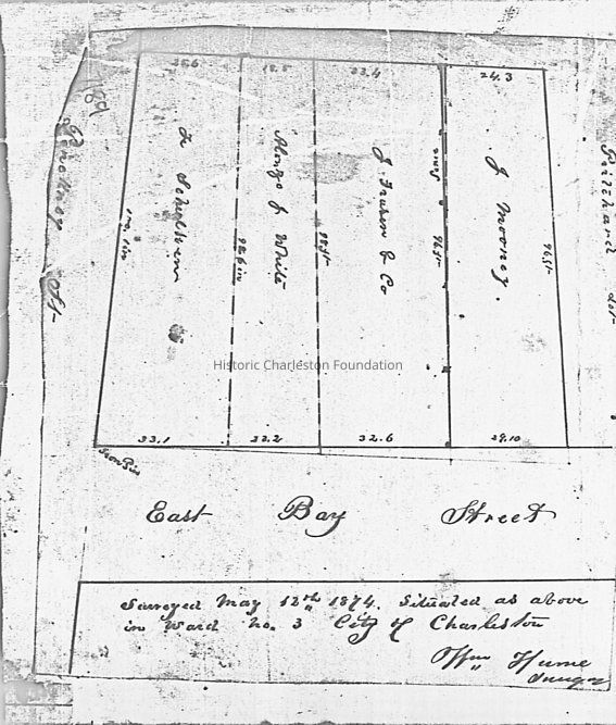 c: "A Plan of a Lot of Land on the West Side of East Bay Street ... Ward No. 1, Showing all the Buildings and other Improvements Thereon, Belonging to Thomas Somarsall(?) ..." Surveyed 23 November, 1799, by J. Purcell. also shows a lots belonging to Thomas Pinckney, John McCall, and Daniel Jennings(?).