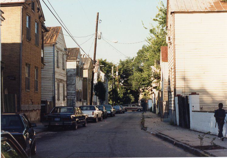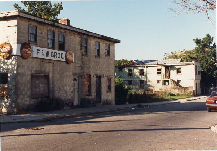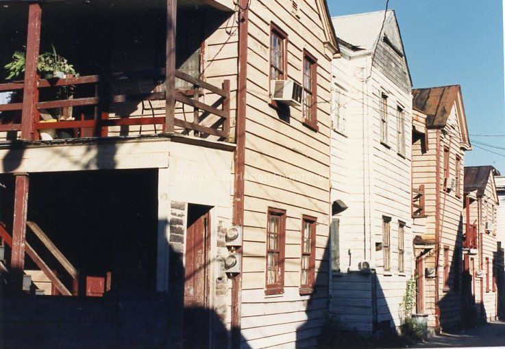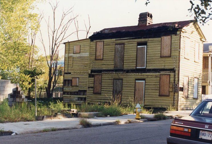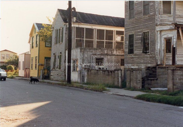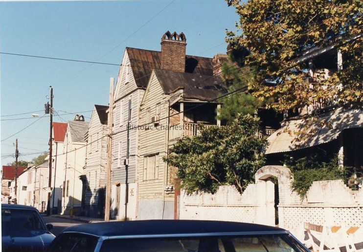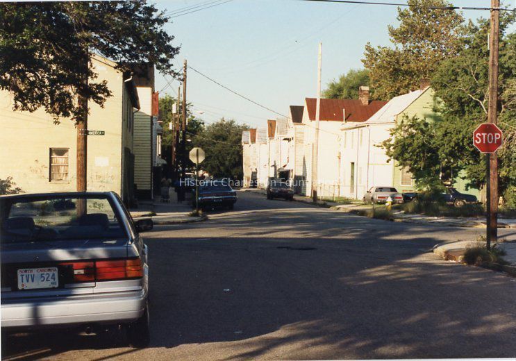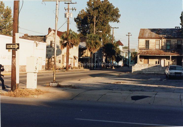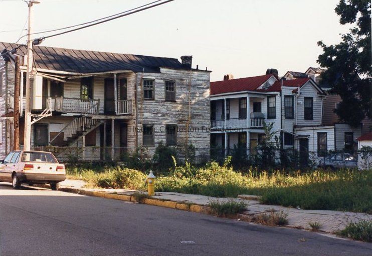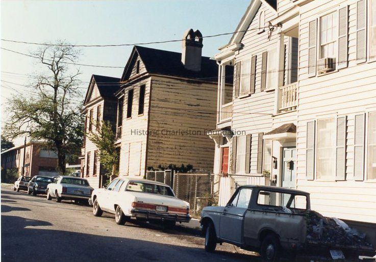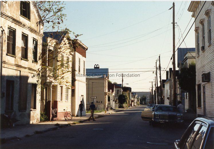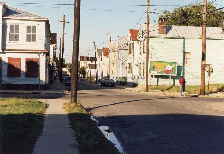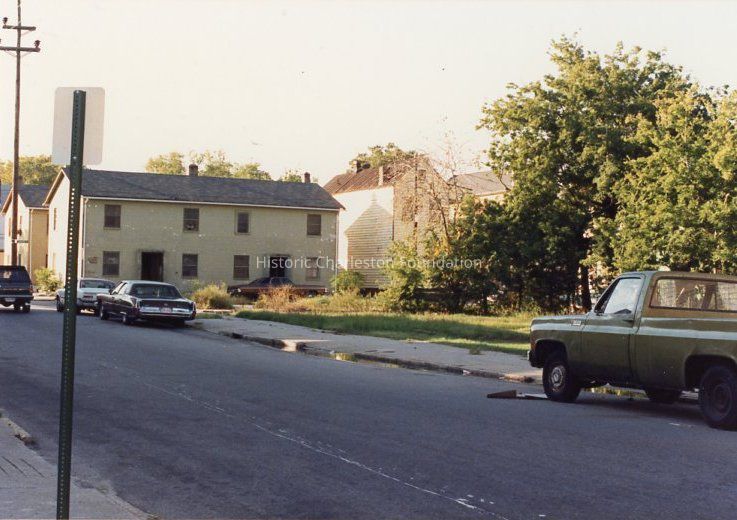 Other photos are not identified; however, labels found in file indicate that photographs include Rose Lane, Cannon Street, Bogard Street, Bogard Street looking east, Spring Street at Sires Street, north side of Radcliffe Street, southeast corner of Cannon and President Street, Jasper at Radcliffe Street, Hanover Street, Spring Street, South Street, Cooper Street, Cannon Street at St. Philip Street, Rose Lane, Mary Street at Elizabeth Street, Hampstead streetscape - America Street at Reid Street, Hampstead streetscape showing vacant lots and surviving single houses, northwest corner America at Reid Street, Amherst Street, Hampstead, Hampden Street, Hampstead Square-Aiken Street.Collection