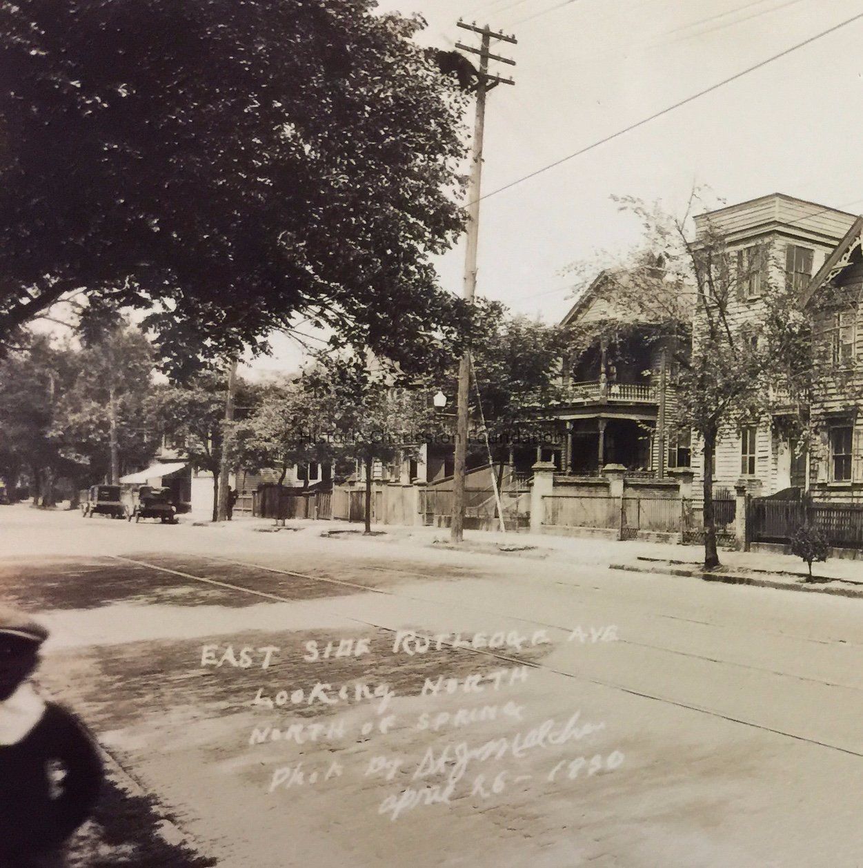 b: View north on Rutledge Avenue from 232 Rutledge Avenue to 246 Rutledge Avenue. Features the edge of 232 Rutledge Avenue, 234 Rutledge Avenue, and 236 Rutledge Avenue. Houses to the north of 236 Rutledge are obscured. Photo is captioned: "East side of Rutledge Ave. looking north, north of Spring. Photo by St. J. Melcher. April 26, 1930."