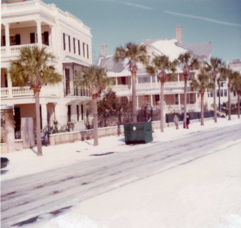 a: View of the street looking north from 21 East Battery. Shoes the southeast corner of the Edmonston-Allston House at left.