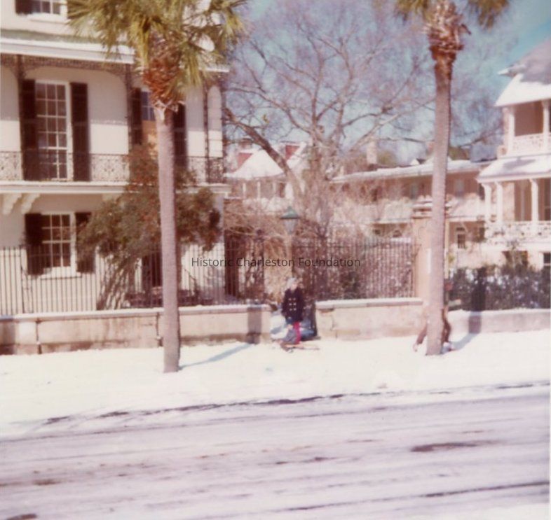 Three color photographs of the Edmonston-Alston House (21 East Battery) after a snow storm, dated 1971-1972 (handwritten on back of photos):