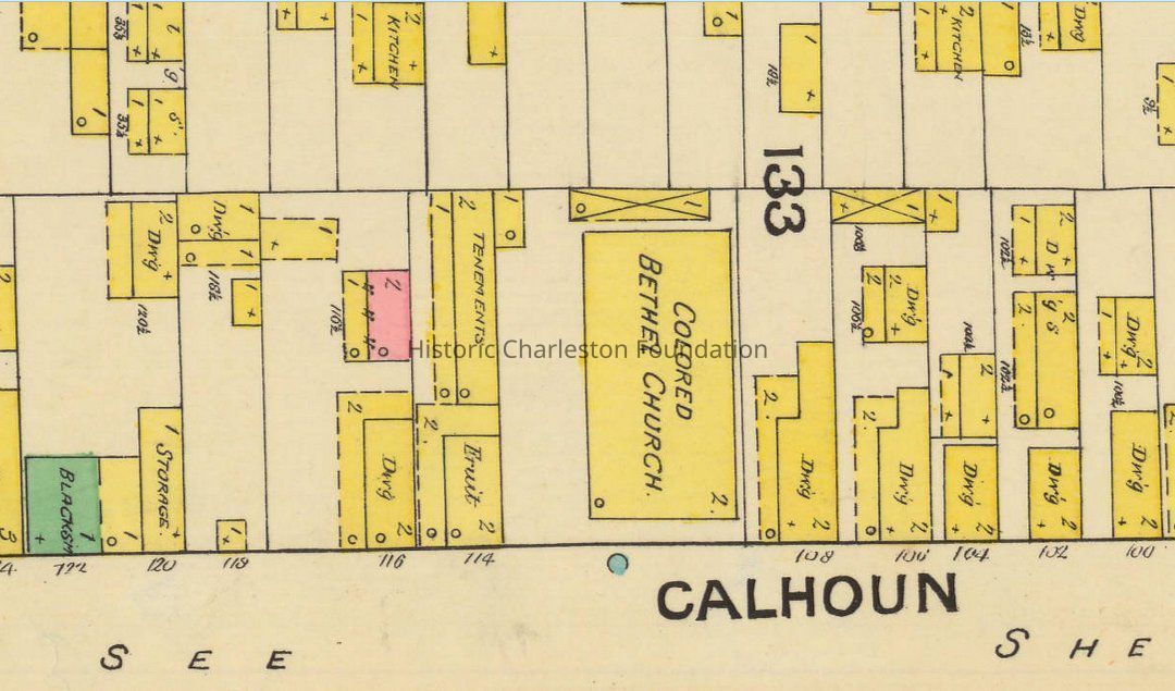 114 Calhoun does not appear on the 1944 Sanborn Map. Date of demolition of 116 Calhoun Street unknown.Collection