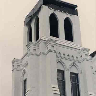 Twelve color photographs of Emanuel A.M.E. Church (108-110 Calhoun Street) taken soon after Hurricane Hugo.
