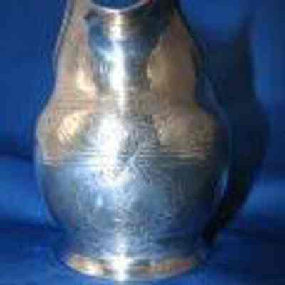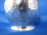 Decoration: Lip: is done in chasing with three different bands. Shoulder has three sections: Upper and lower with pierced band; middle section has central floral decoration with flowers, fruit, and acorns within a ribbon repeat. Lower section has chasing in several bands with prominent decoration in second band. .