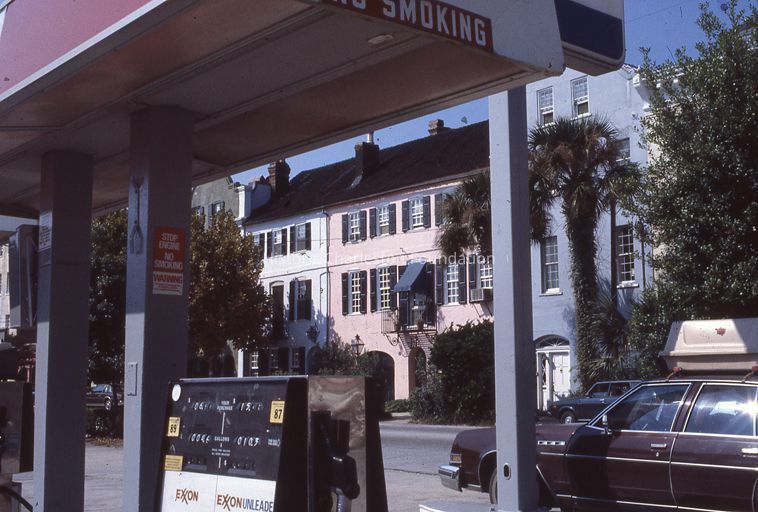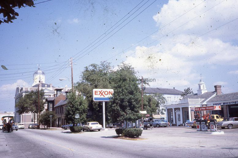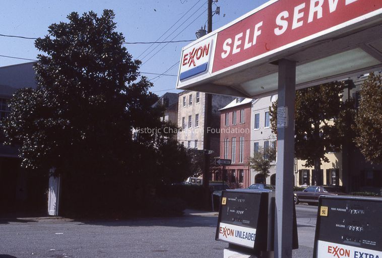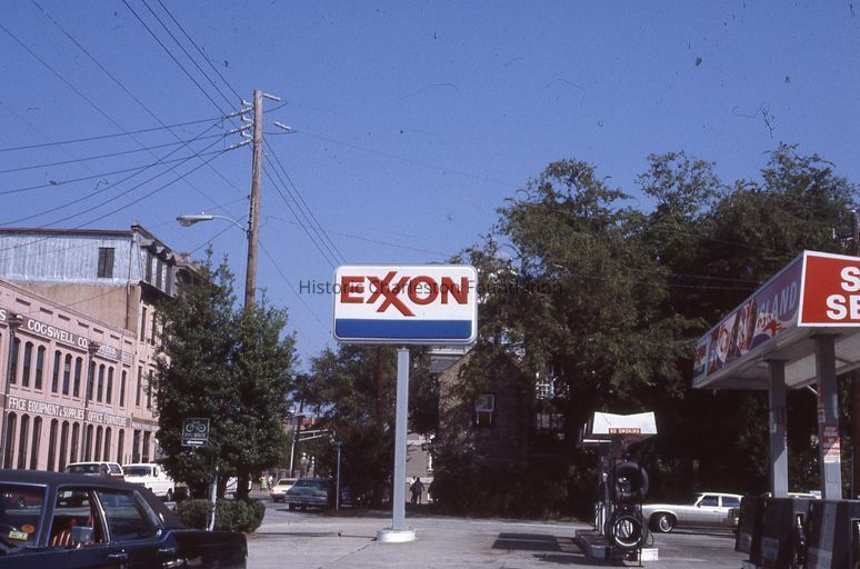 Seven Ektachrome color slides showing various views of the Exxon Station at 102 East Bay Street. Now the site of a condominium building.Photograph Details