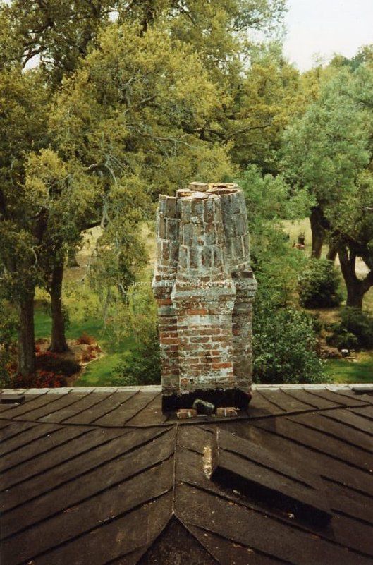 Eleven color photographs of the chimneys at Fairfield Plantation, presumably documenting conditions before restoration. Photos 7-9 feature the inscription in the mortar, "January 27, 27, 1766."Collection