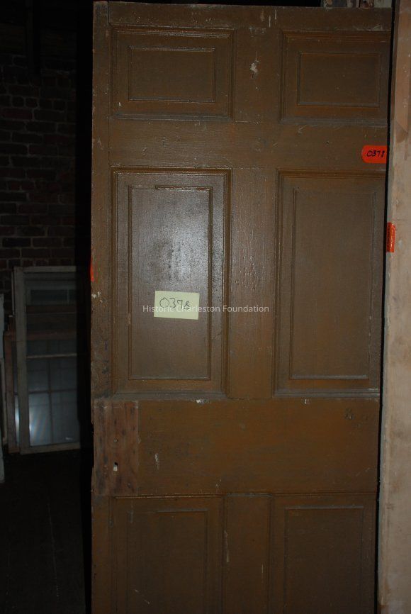 Six-Panel Door. 82"H x 36.5"W. Damage to knob area; knob missing.