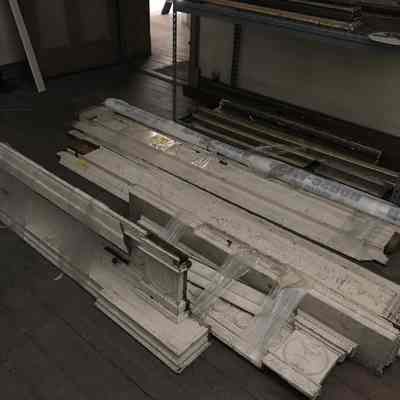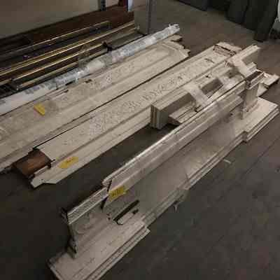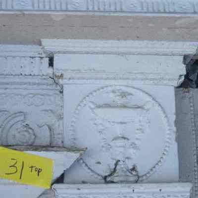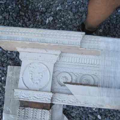 Heart of pine door surround with decorative compo molding. Federal period. Three pieces: header, left pilaster, right pilaster.