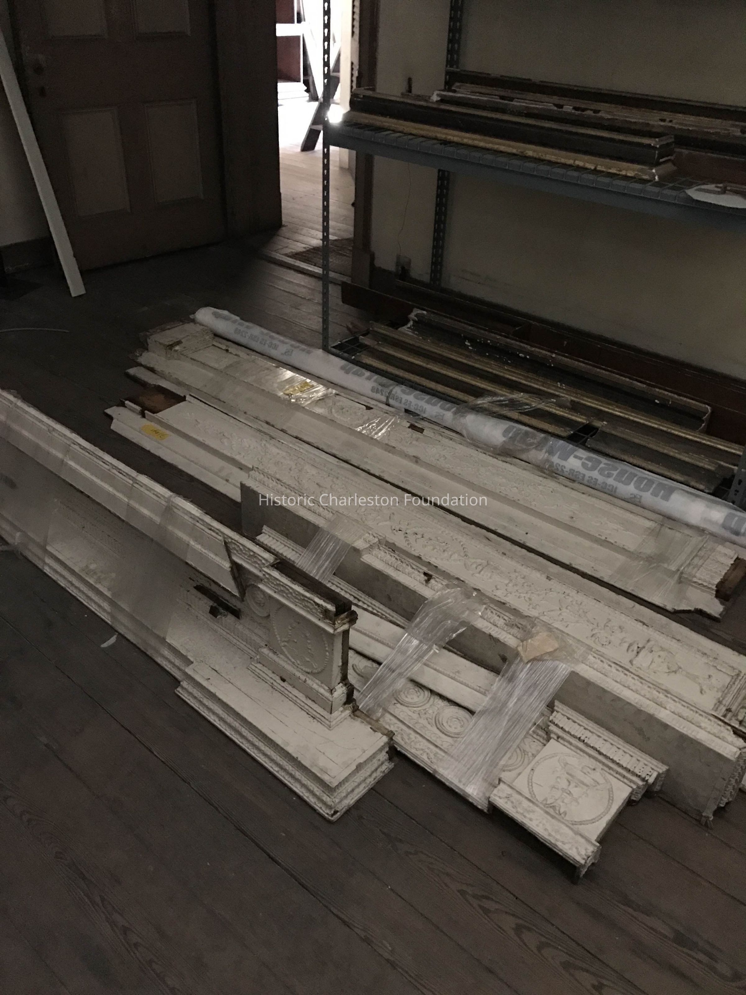 Removed from the Radcliffe-King Mansion originally, reinstalled in the Dock Street Theater, and then removed after DST restoration.Created By