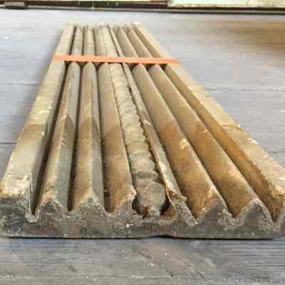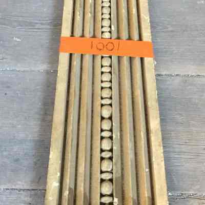 Fragment with 3 grooved channels on either side of a vertical egg pattern. In relatively good condition except for chipping paint.