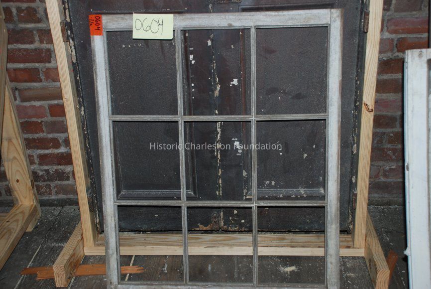 Single sash of a nine-over-nine sash window. No surviving glass.