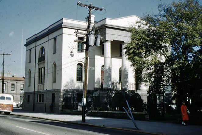 Two color slides (scans) of the Fireproof Building (100 Meeting Street):