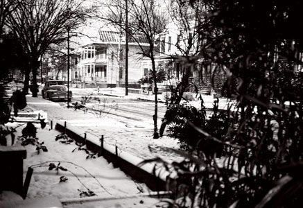 Donor believes that this picture shows 90 Fishburne Street as the house on the corner, directly across the street from the parked car. 90 Fishburne is still standing at the corner of Coming and Fishburne. Everything to the east of it up to 74 Fishburne is gone. (Details and address provided by the donor.)Collection
