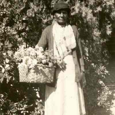Two B&W photographs of women selling flowers, locations unknown.Collection