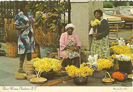 Three African-American women selling flowers and sweetgrass baskets outside the Charleston Post Office.Collection