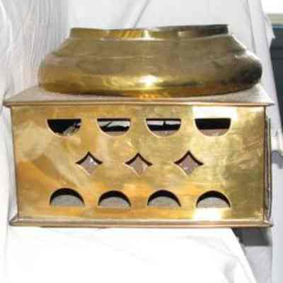 Brass Footwarmer For Use in Carriage. with Inner Drawer with White China Knob. Top Has Loose Mesh Dome.Collection