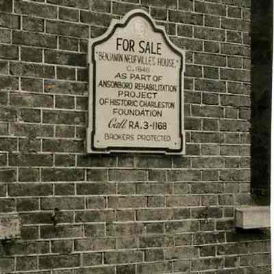 b: Sign: For Sale "Benjamin Neufvilles House," ca. 1848, as Part of Ansonboro [sic] Rehabilitation Project of Historic Charleston foundation. Call RA.3-1168. Brokers Protected."Collection