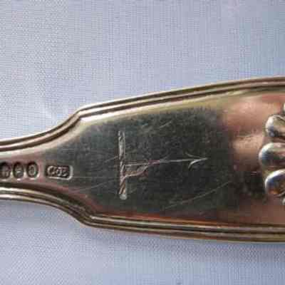Seven dinner forks, Fiddle Shell Design, engraved with arrow crest on back side of handle. Stamped with hallmarks of Dublin, C. 1823, Makers mark CE in rectangular cartouche, not found. Also stamped M.West and mark WH above tines on backside of fork.