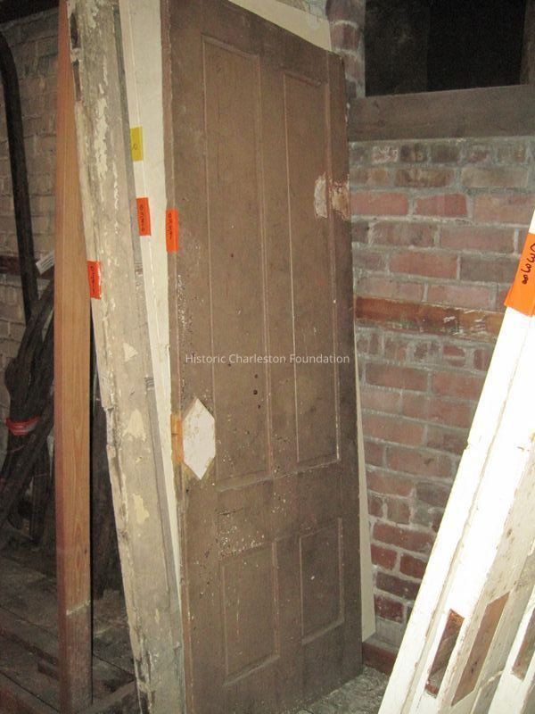Four-Panel Door. 77"H x 28"W. Thin door. Damage at knob.Collection