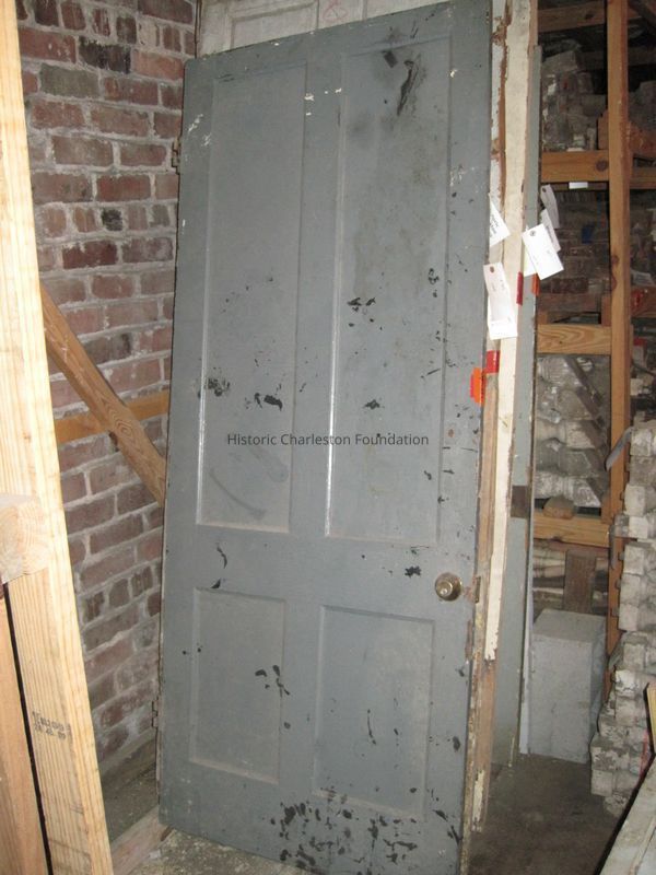Four-Panel Door. 80"H x 33"W. No original hardware. (Has lock.)
