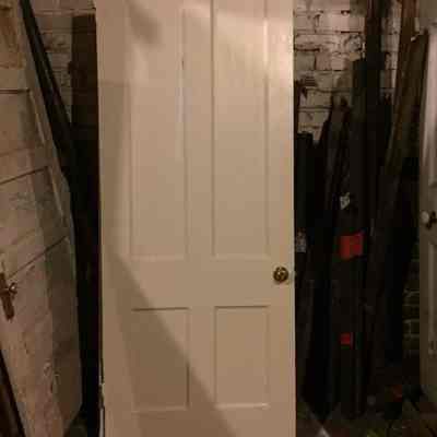 Two four-panel wood (pine) doors removed from 132 Bull Street. Measures 32" x 82" x 1.125".