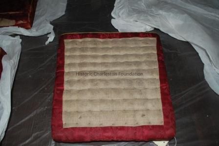 c- silk worn all the way through on front- cord missing on front- underuupholstery exposed on front, not tuffed- ties attatchedGeneral Notes