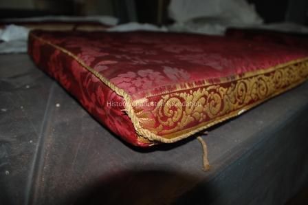 Four Red Silk Damask Chair CushionsEntry/Object ID