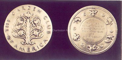 Medallions from the Garden Club of American commemorating Middleton Garden's 200 years of enduring beauty (color photographic print).