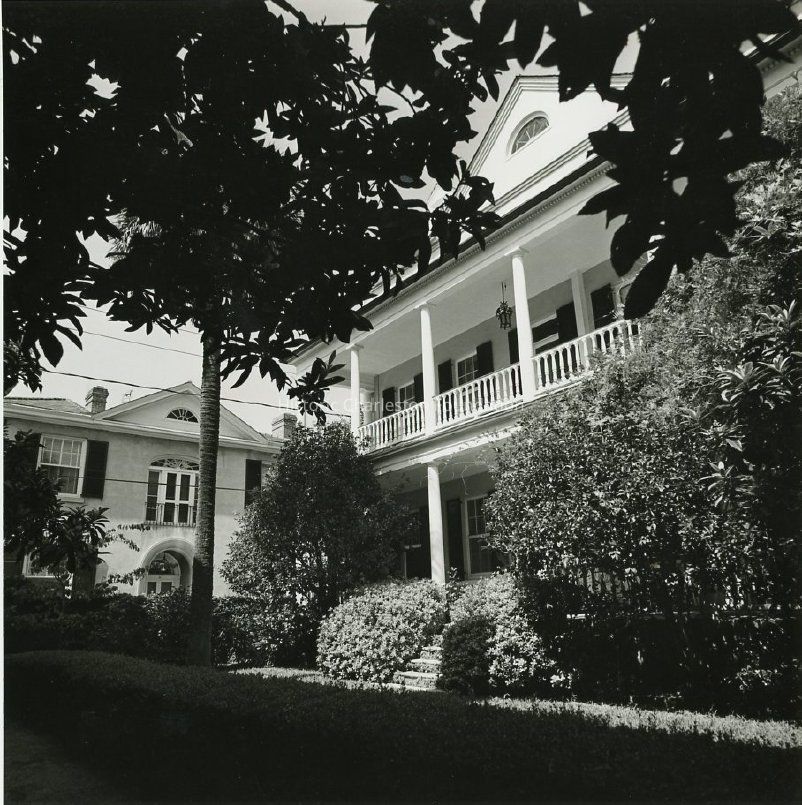 B&W photograph taken from the garden of 20 Church Street (William Holmes House) showing the south elevation (piazzas) of the house. 19 Church Street visible at left.Collection