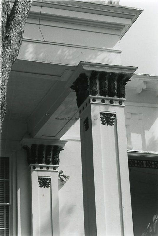 B&W photograph of the square columns of the George Reynolds House portico (60 Hasell Street).Collection