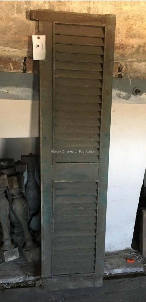 One of a pair of wood shutters.* Georgian, 1770-1790. Original wrought iron strap hinges. Fixed louver with applied astrigal molding.